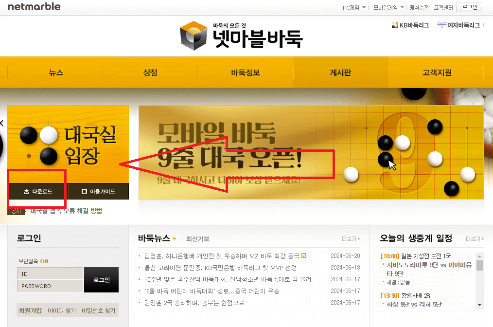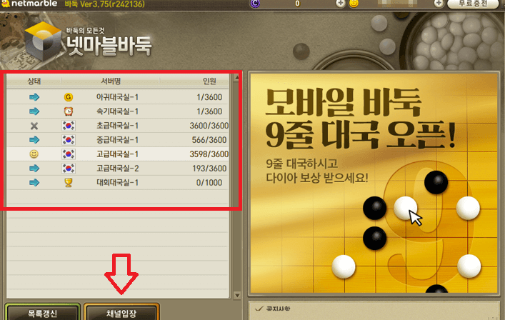 넷마블 바둑 홈페이지 -> 대국실입장클릭 하여 로그인 한뒤 서버를 선택하여 입장합니다.