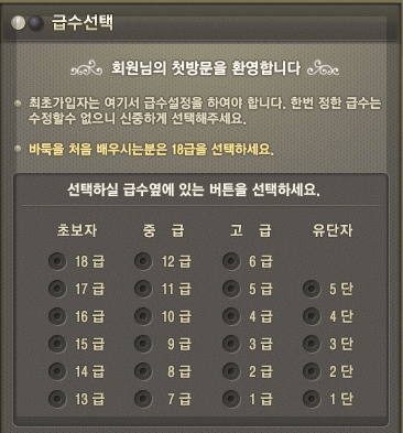-> 급수선택: 본인의 기력에 맞는 급수를 선택하면 됩니다.