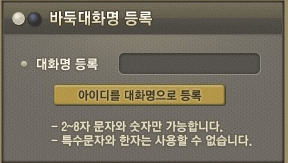 -> 대화명 등록: 본인의 아이디를 그대로 이용하거나 대화명을 새로 입력하여 사용합니다.