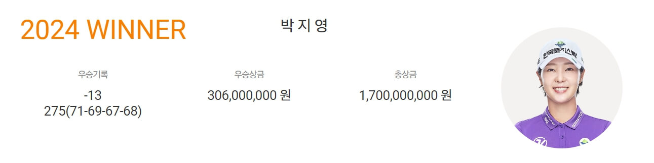 2024년 klpga 한화 클래식 1위 우승자는 박지영 선수가 차지하였습니다. 축하드립니다.