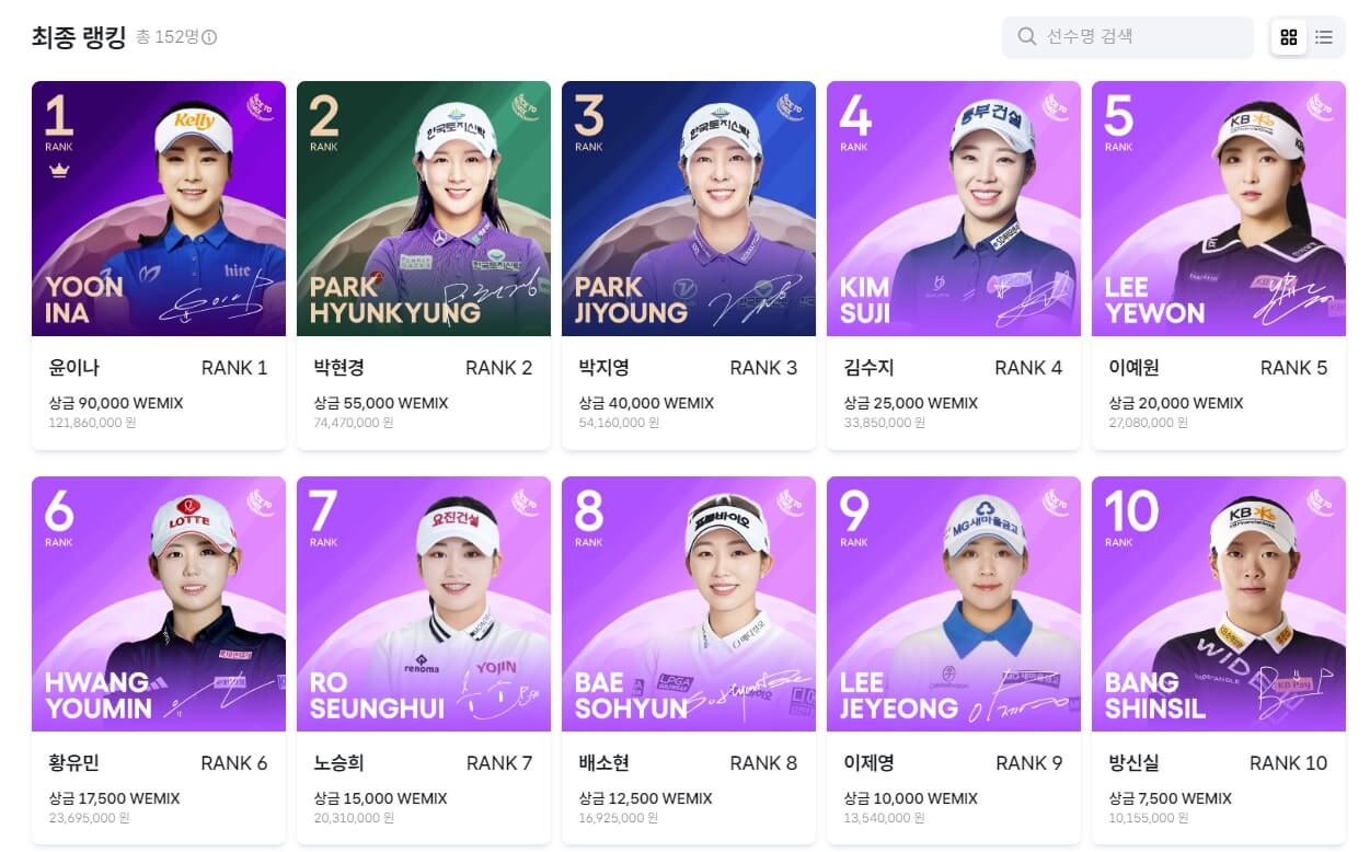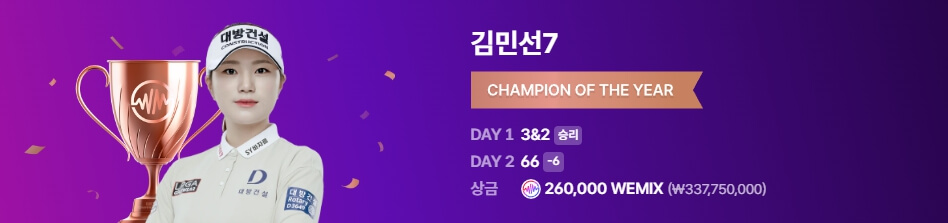 이번 대회의 특별한 점은 상금이 위메이드의 암호화폐 '위믹스'로 지급된다는 것입니다. 우승자 김민선은 29만 위믹스(약 3억 4천만 원 상당)의 상금을 획득하게 되었습니다.